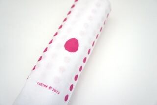 第4回やびな市手ぬぐいです。白地にピンクのドット模様の手ぬぐいです。商品はヤマト便のメール便で発送します。